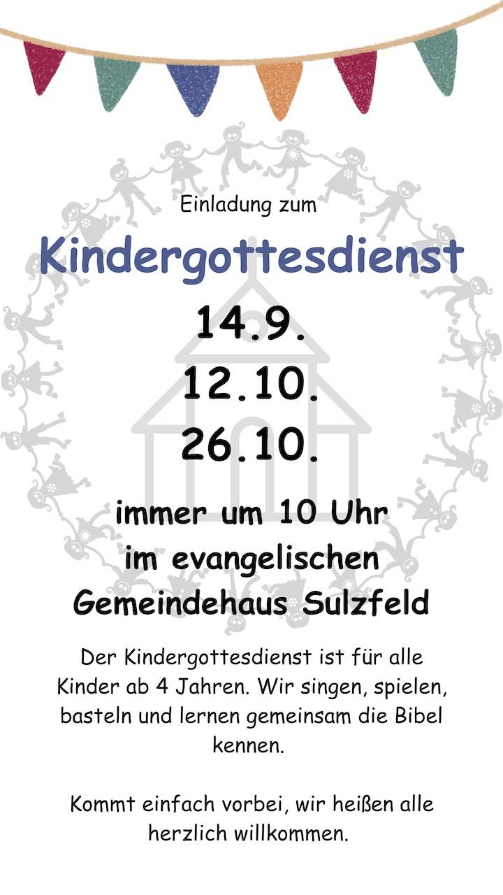 Wir treffen uns immer sonntags um 10:00 Uhr im evang. Gemeindehaus.